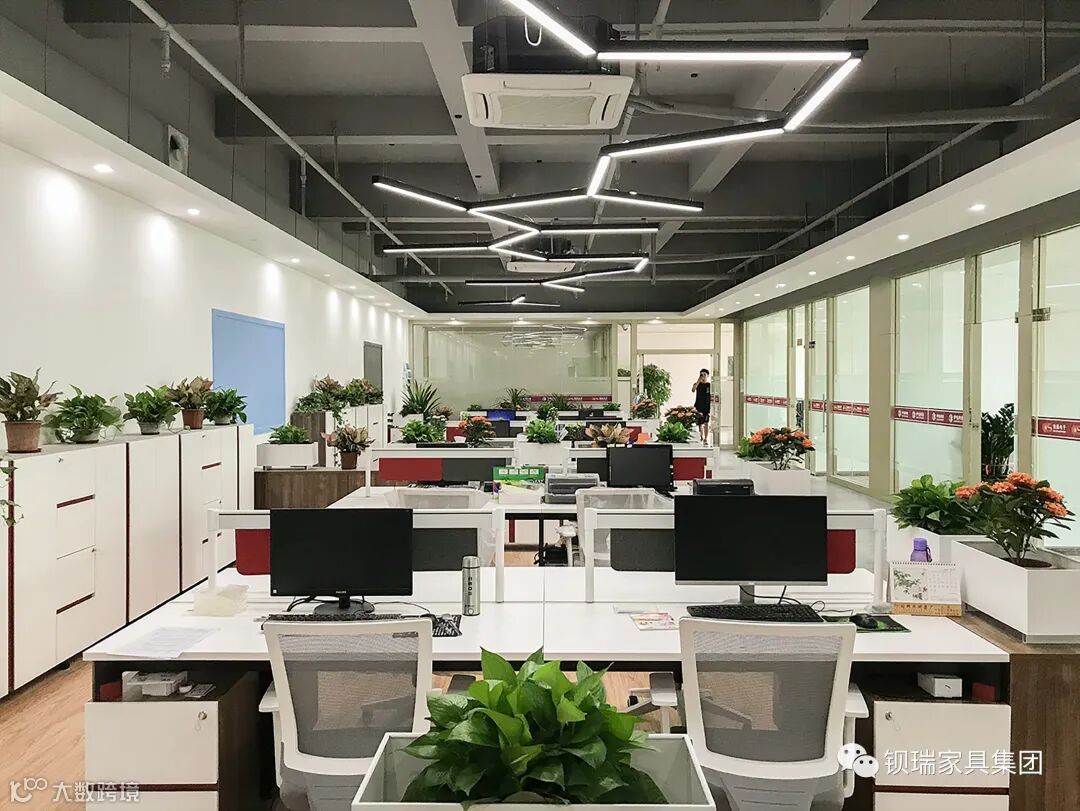 直条开放式办公组合的办公区域,在敞开式办公环境里,多种办公桌的组合方式,丰富单调的办公空间,布局灵活、巧妙,营造充满活力的工作氛围。
