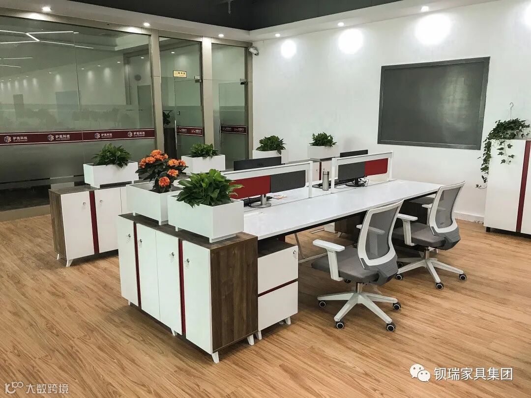一览无遗的开放式办公空间里,简洁有序。存储柜的摆放,巧妙的将走廊与办公区域隔离,完成空间利用率和强大存储功能。