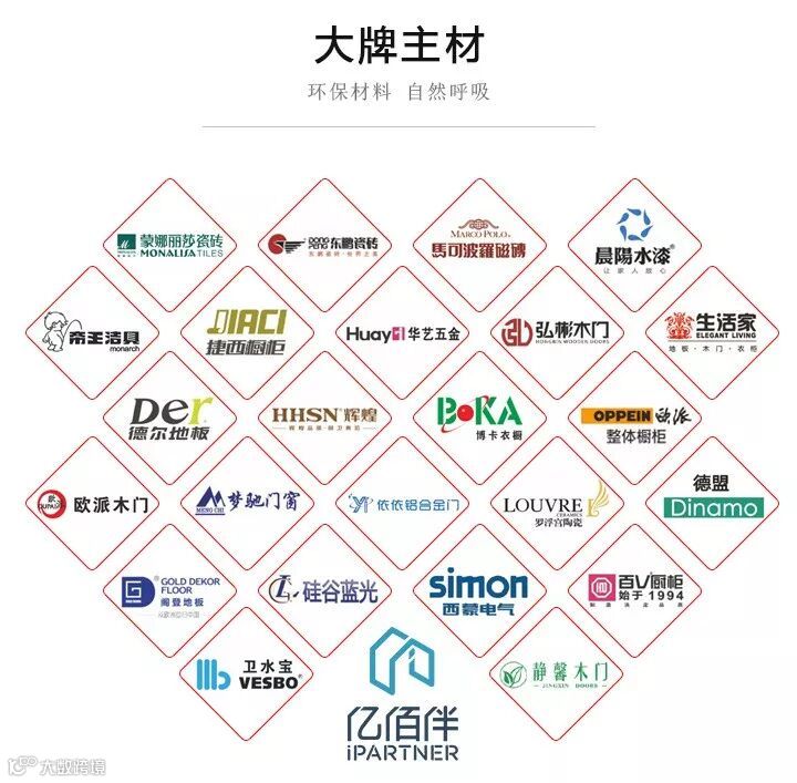 工厂价豪华全包装修,告别家装暴利,远离材料黑幕,省掉暗箱操作,拒绝上当环节。亿佰伴联合全国176家建材家居大品牌,实现工厂价装修,取消所有中间环节,等于你直接从工厂拿货到自己手中。我们将装修报价,标准化,平民化,真正做到省心省力更省钱。