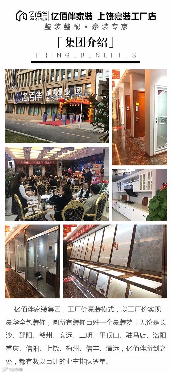 工厂价豪华全包装修,告别家装暴利,远离材料黑幕,省掉暗箱操作,拒绝上当环节。亿佰伴联合全国176家建材家居大品牌,实现工厂价装修,取消所有中间环节,等于你直接从工厂拿货到自己手中。我们将装修报价,标准化,平民化,真正做到省心省力更省钱。