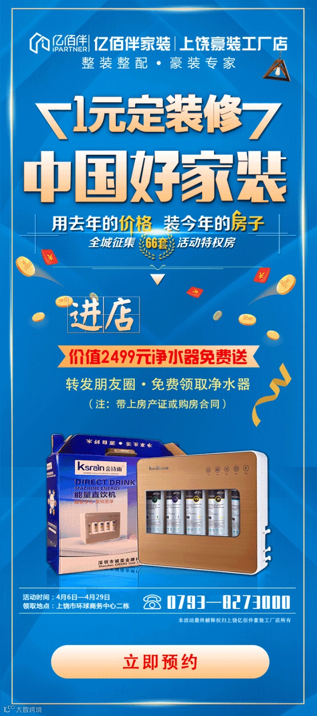 亿佰伴中国好家装-1元定装修,前20名送8大豪华电器加智能门锁和主卧淋浴房