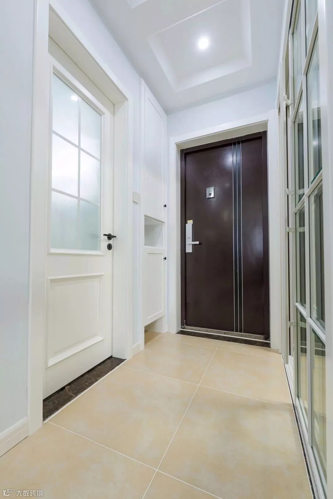 ▲ 建筑面积110平,总造价18万,入户走廊两边利用玻璃门片,让过道变得通透明亮
