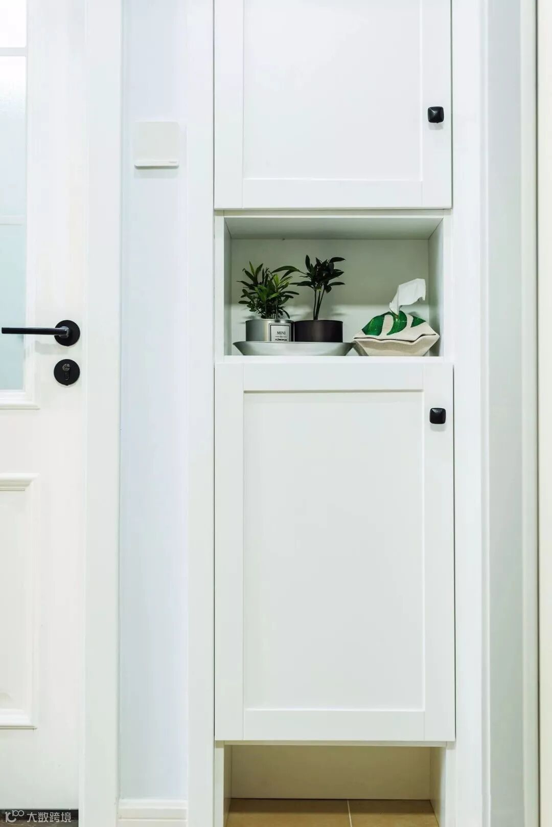 ▲ 一组嵌入式分体柜作鞋柜使用,中部与底部留空,打造小巧且具功能性的入户区