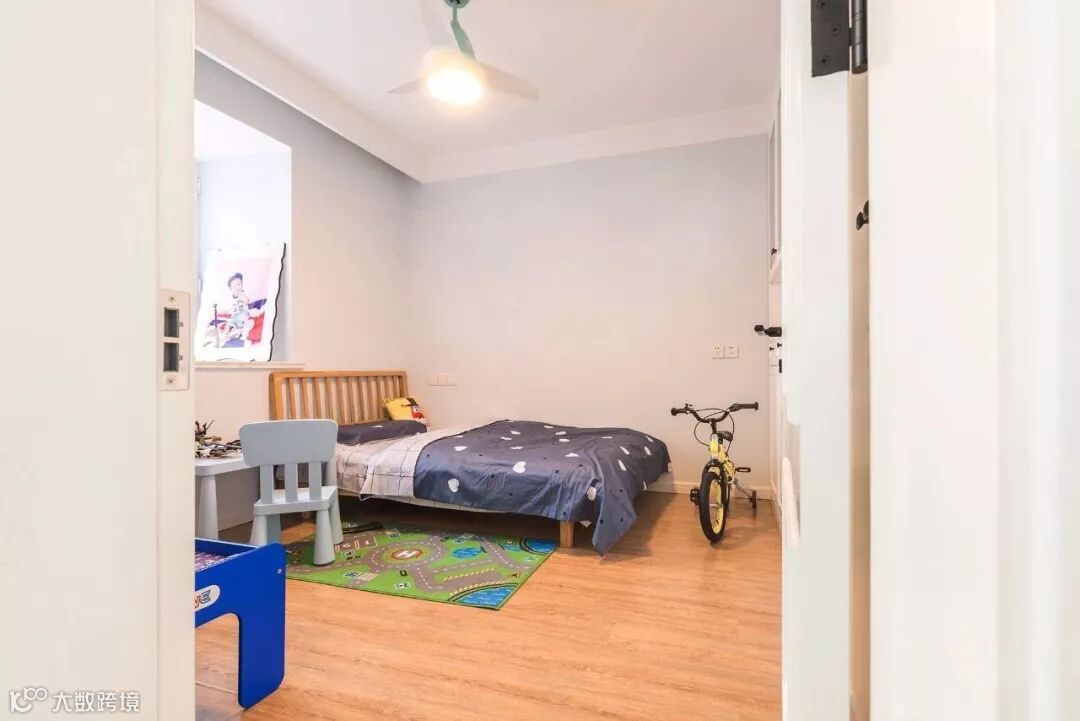 ▲ 儿童房延续木地面与浅色墙面,小尺寸的家具更方便儿童使用