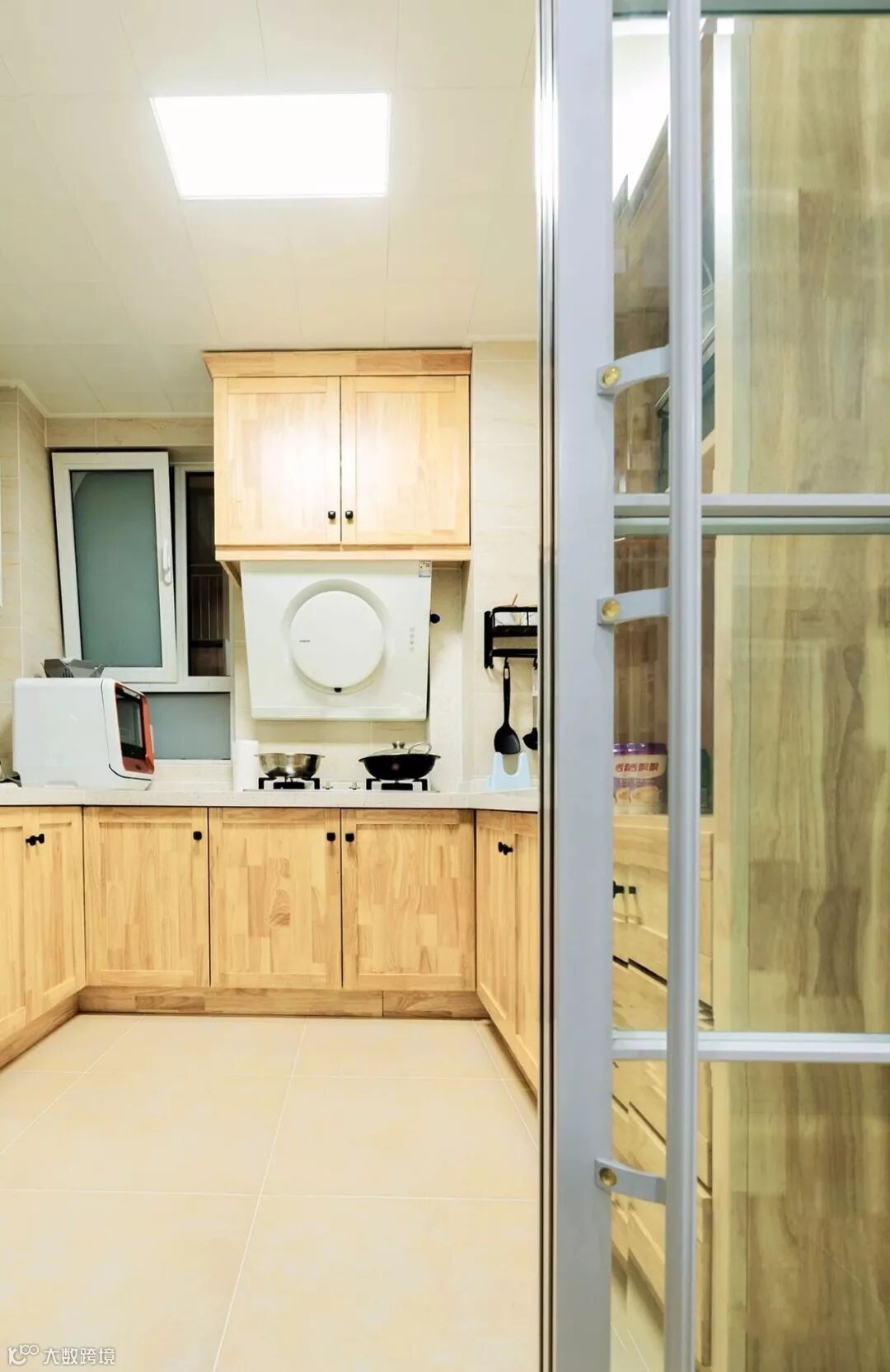 ▲ 厨房,大面积原木色橱柜门板搭配浅色料理台面,充足的收纳空间让厨房变的更加整洁