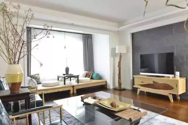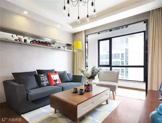 2、将客厅和阳台打通,做个收纳柜,放张休闲茶几等等,将阳台的空间充分利用起来,绝对比晾衣服好看一百倍。