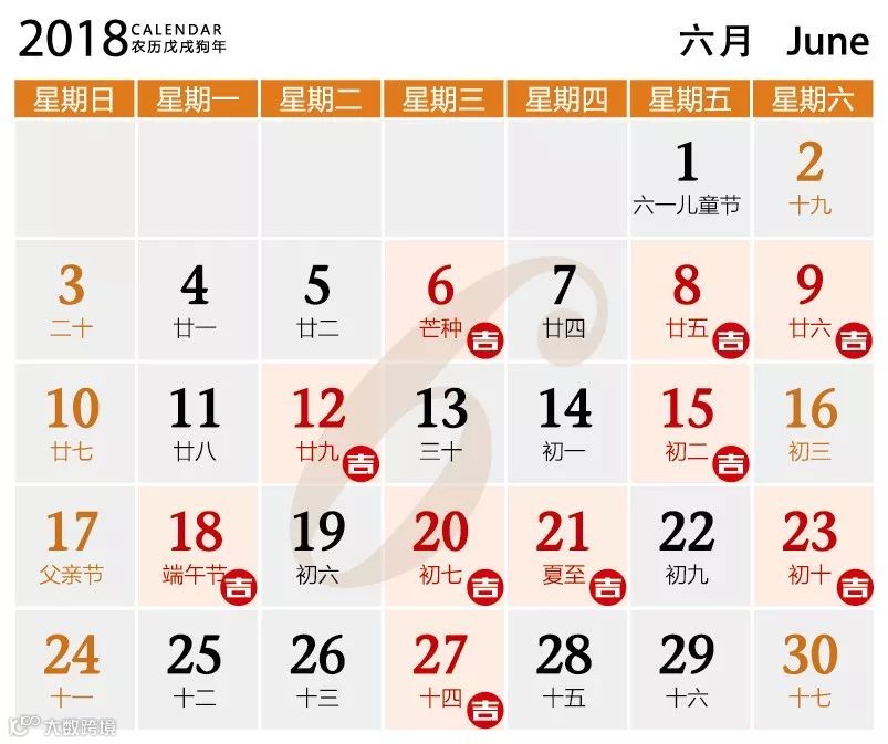 公元2018年06月18日 农历05月(小)05日 星期一 双子座 农历戊戌木年 五月小 初五日