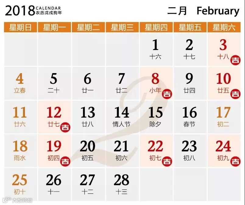 公元2018年02月08日 农历12月(大)23日 星期四 水瓶座 农历戊戌木年 十二月大 廿三日