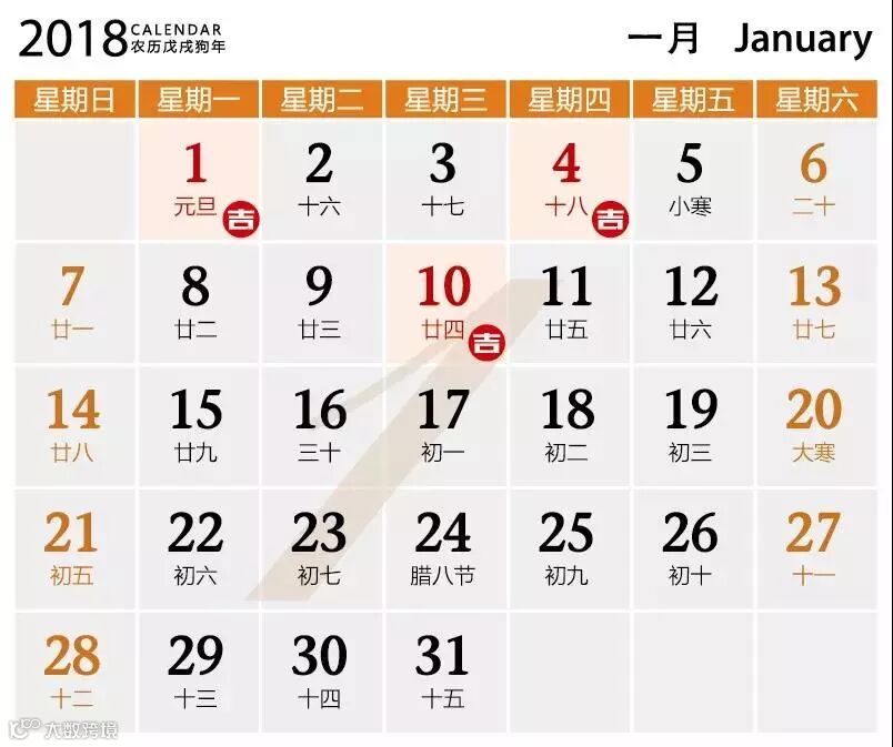 公元2018年01月04日农历11月(大)18 星期四 山羊座 农历丁酉火年 十一月大 十八日