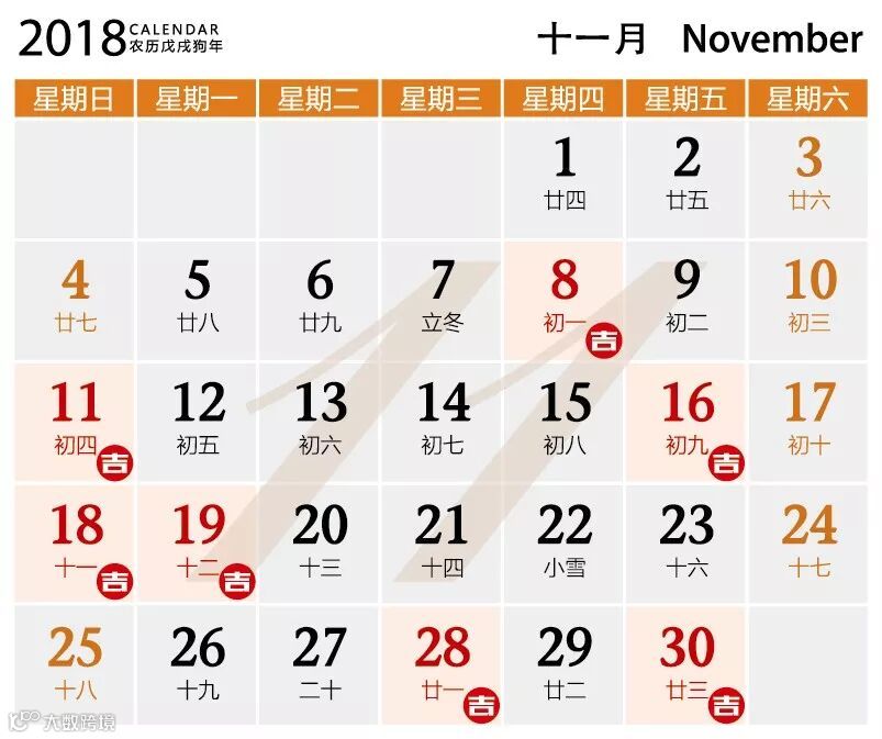 公元2018年11月30日 农历10月(小)23日 星期五 射手座 农历戊戌木年 十月小 廿三日