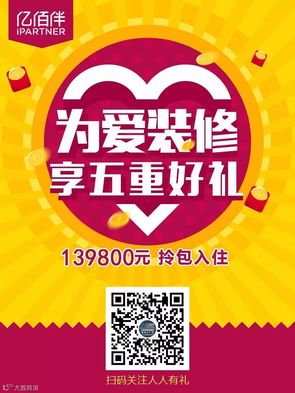 感谢有你,一路相伴,热烈庆祝亿佰伴家装成立7周年,公司总部研究决定,联合176家厂家赞助,回馈上饶人民,面向上饶业主征集68户周年庆‘零利润样板房’征集活动仅限10月29日上午09:58—12:58,每个分区仅限15户业主,亿佰伴让您只花普通装修的钱就能装出最豪华的家。