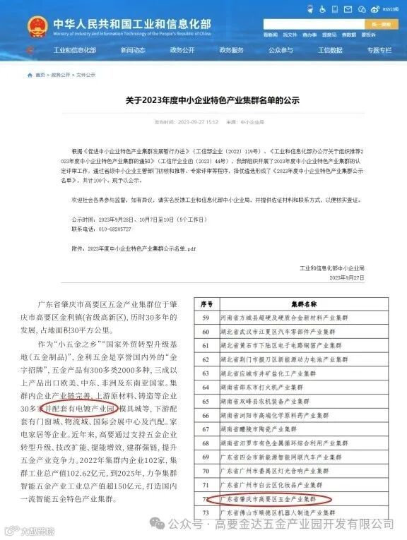 国家工信部公布高要区金利
