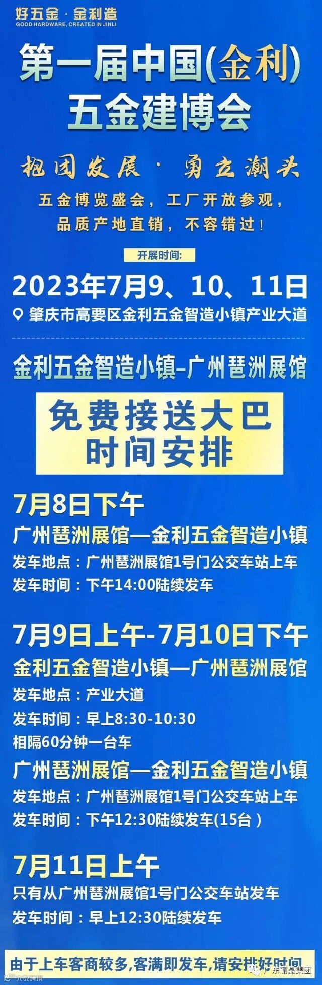 继6月首届金利五金国际博览会的举办,肇庆市高要区委、区政府乘胜追击,将于7月9至11日在金利镇举行为期三天的第一届中国(金利)五金建博会,进一步擦亮“好五金·金利造”名牌,把金利打造成为省级高新区示范样板、产城融合职住平衡示范样板、“百县千镇万村高质量发展工程”示范样板。