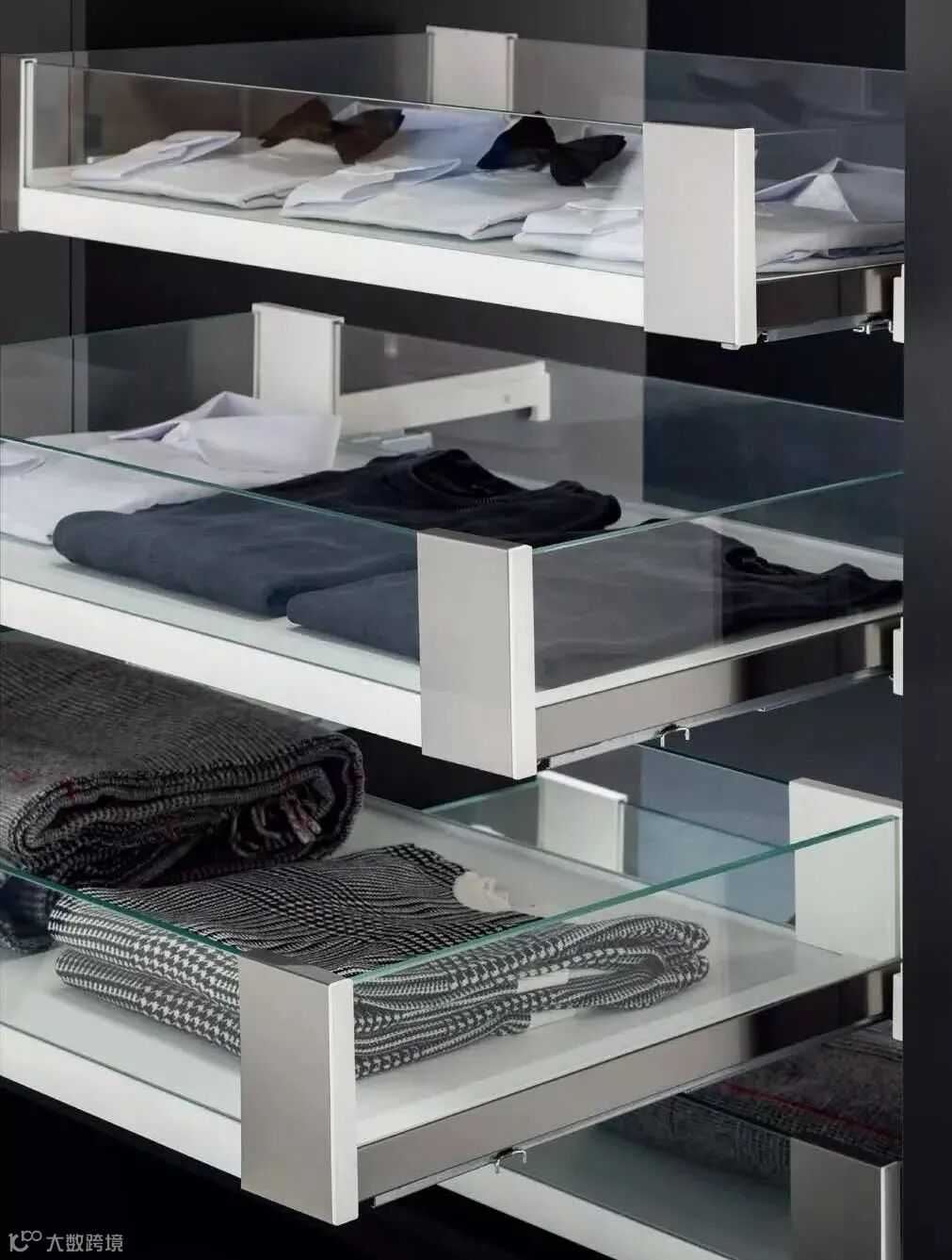 衣柜内抽屉设计,不起眼却格外实用,可帮助衣柜储藏更多物品。适合抽屉的衣物:背心、薄T恤、贴身衣物、领带、腰带、丝巾等物。