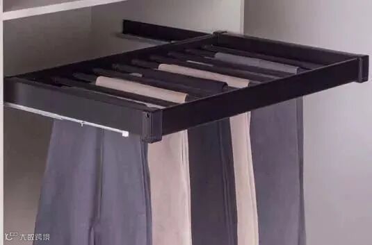 裤架:裤子折叠收纳会更美观些,如果选择悬挂,预留空间在100cm左右比较合适,或者选择一种更好的收纳方式:宽度可调抽拉式裤架。