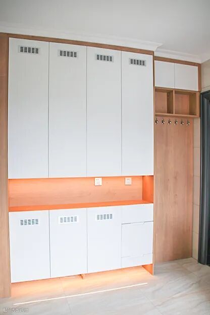 玄关虽然在住宅中面积不大,但使用频率较高,是进出住宅的必经之处;玄关在使用功能上,可以用来作为简单地接待客人、换鞋、搁包等物品平台。