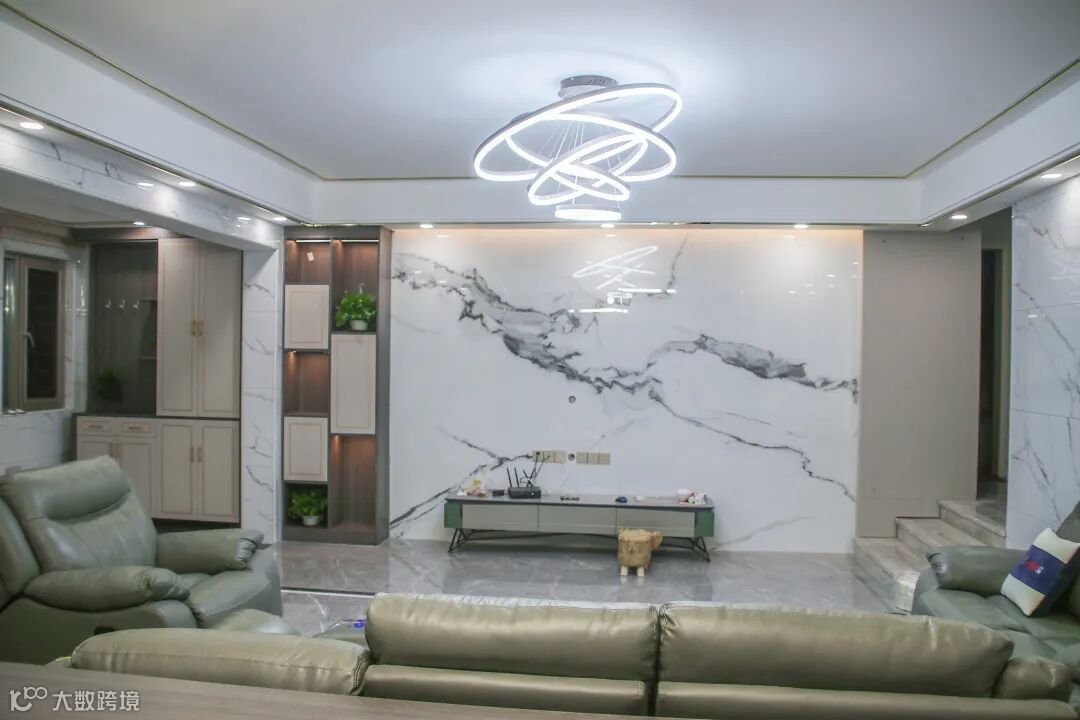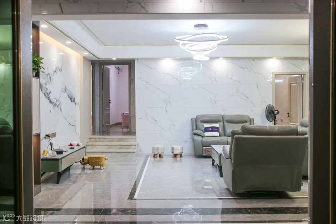 黑白灰是整个空间的主色调。客厅以轻松自然的氛围为基调,除去纷繁复杂的装饰,天然石材为背景,开阔通透的空间视觉感,简雅中不失格调,为整个空间增添了新的生命力。