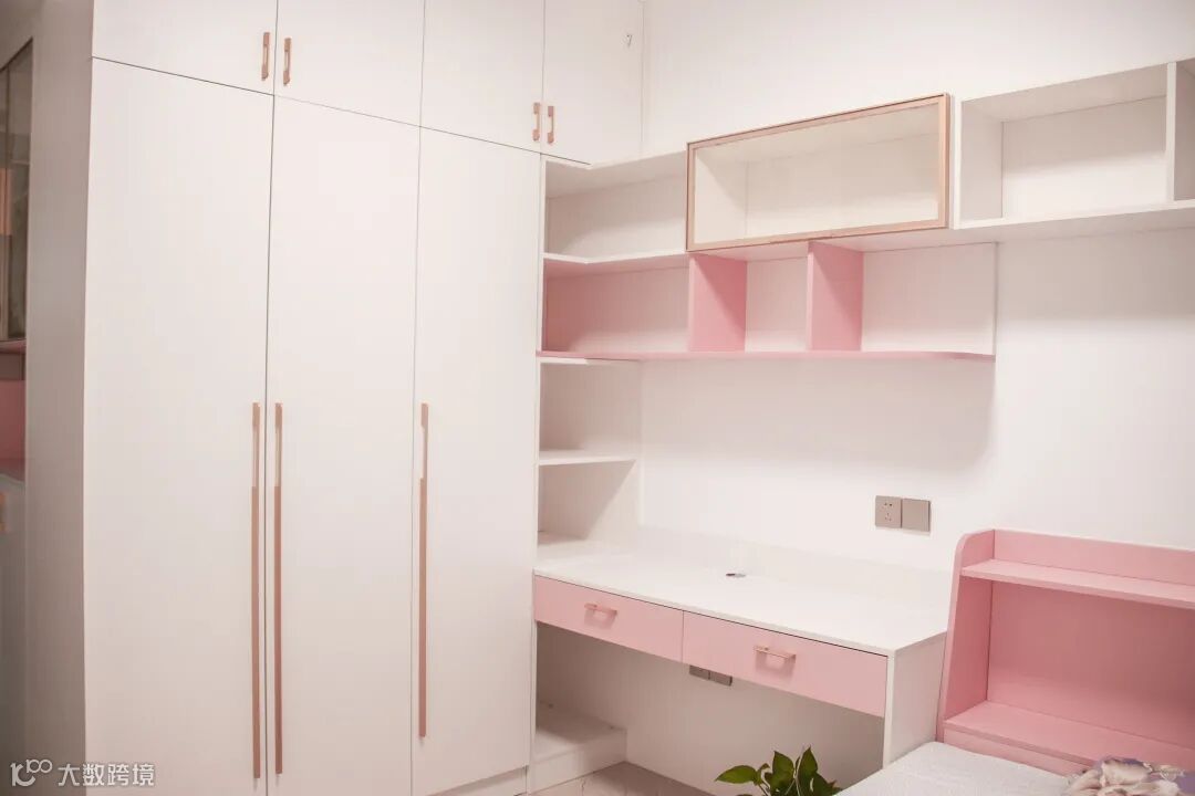 女孩房的整体色调以低饱和度的搭配呈现,保持精致感的同时又不失活泼圆润,设计中过量的粉饰,清淡纯真的色调,像少女绽放的内心世界,让人留恋着迷。
