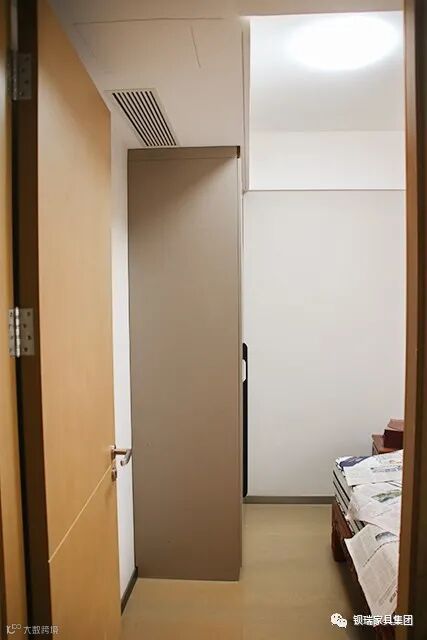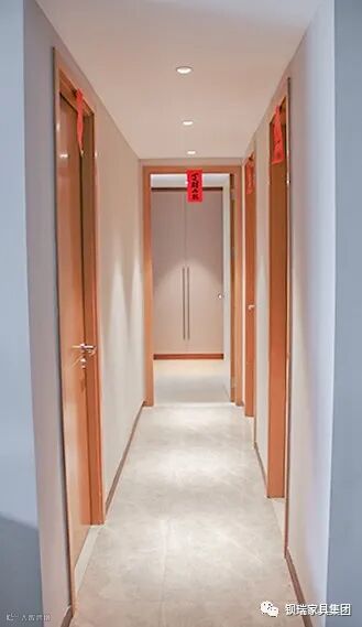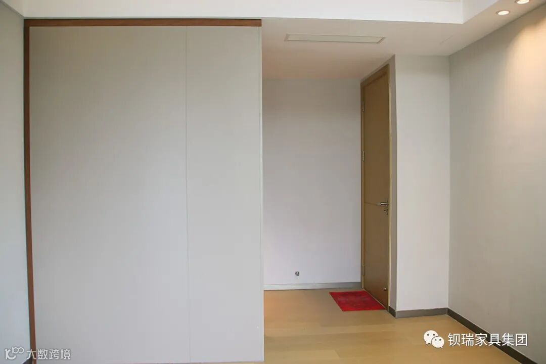主卧依旧延续轻奢优雅的设计风格,和谐统一的配色营造了温馨舒适的空间氛围,暖灰色衣柜展现了空间的质感,巧妙的布局、色调、光线设计等各个方面,展现出了空间独有的现代感与轻奢气质。