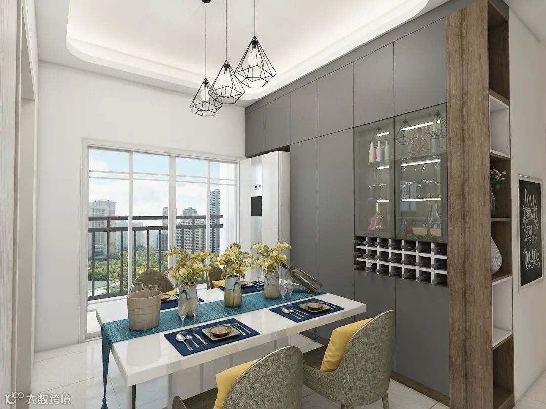 餐厅的吊灯极具现代主义色彩,垂挂的造型让高度层次变得更为丰富,为空间画龙点睛。