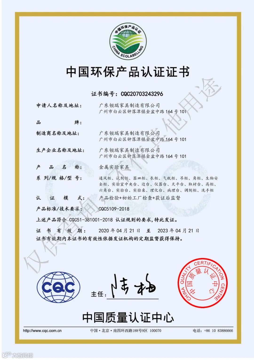钡瑞实验室家具 · 资质
