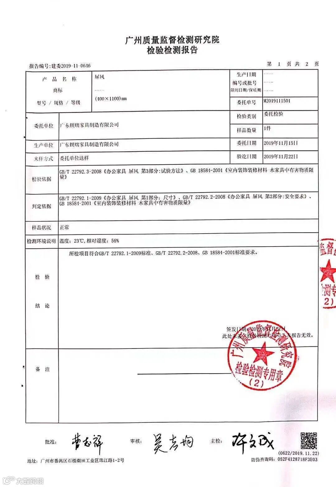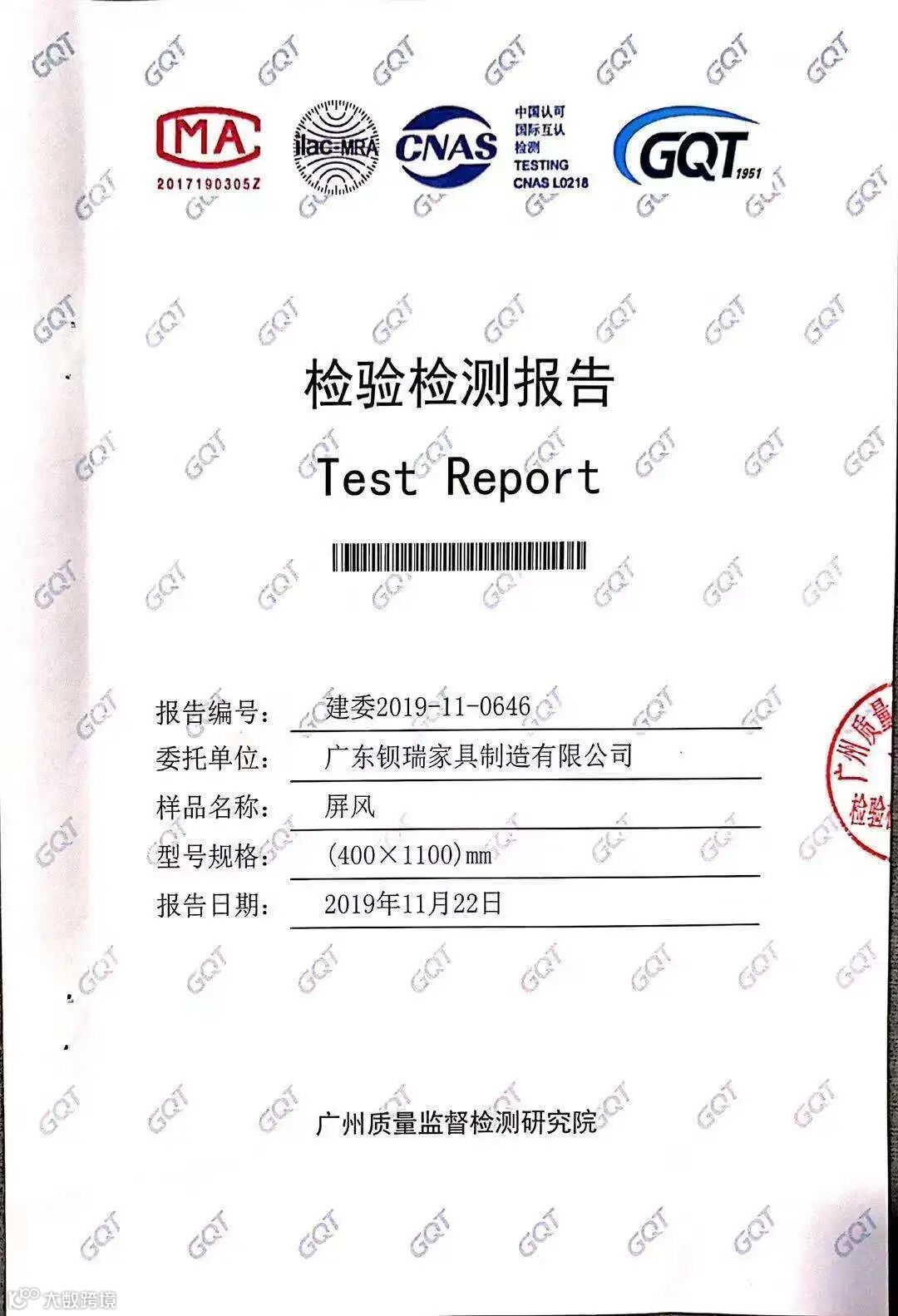屏风检测报告