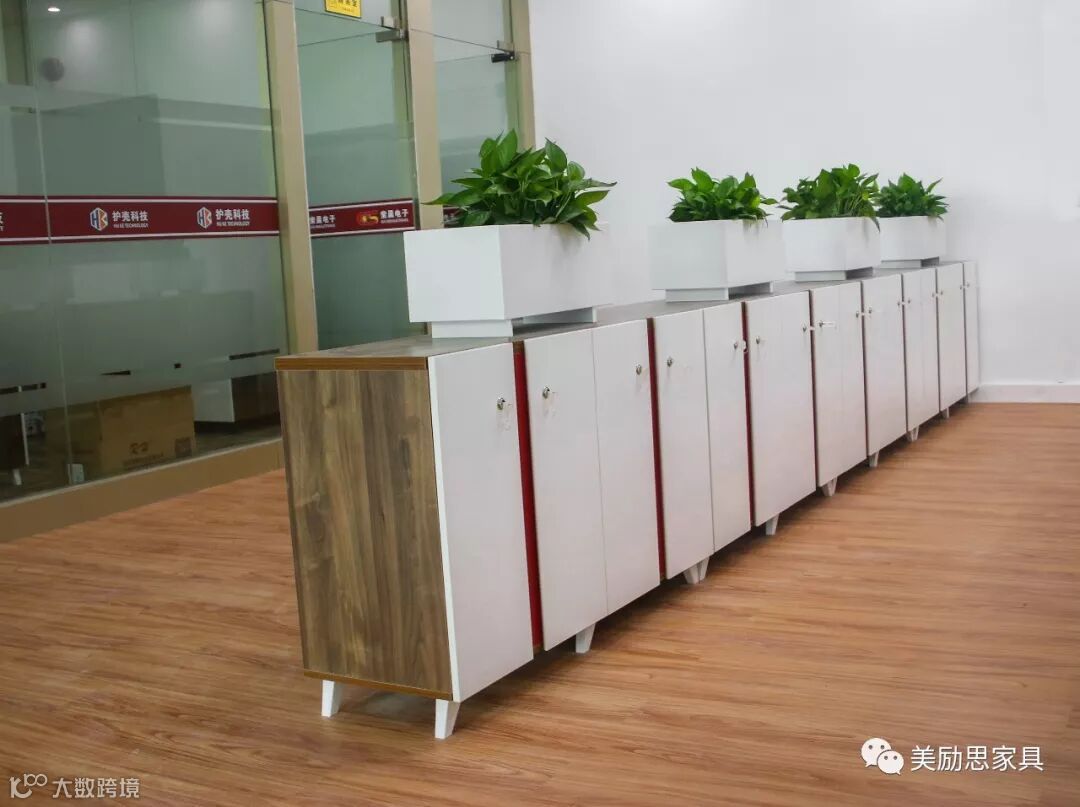 由于办公人员多,所以集体办公室前后两端都做了资料柜,为了保护私密资料,还特意制作了几个带锁的柜子;设计灵活、功能强大,以其丰富的组合选择,为办公空间或会议室营造和谐氛围。