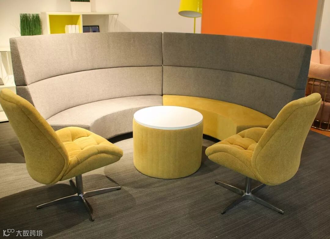 弧形沙发一般以围合的方式摆放,很容易营造出热闹、欢乐的氛围。尤其是塑造不对称空间或角落空间时,它能瞬间展现出时尚感。优雅的弧线造型打破了沙发一定要靠墙的传统,更有人情味。