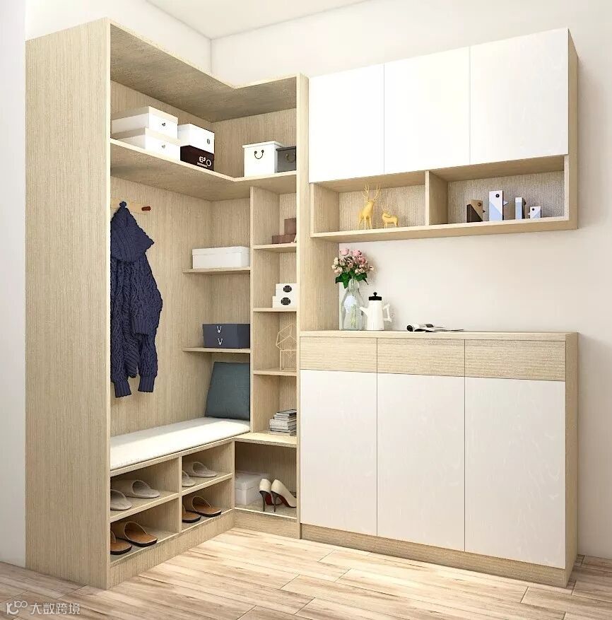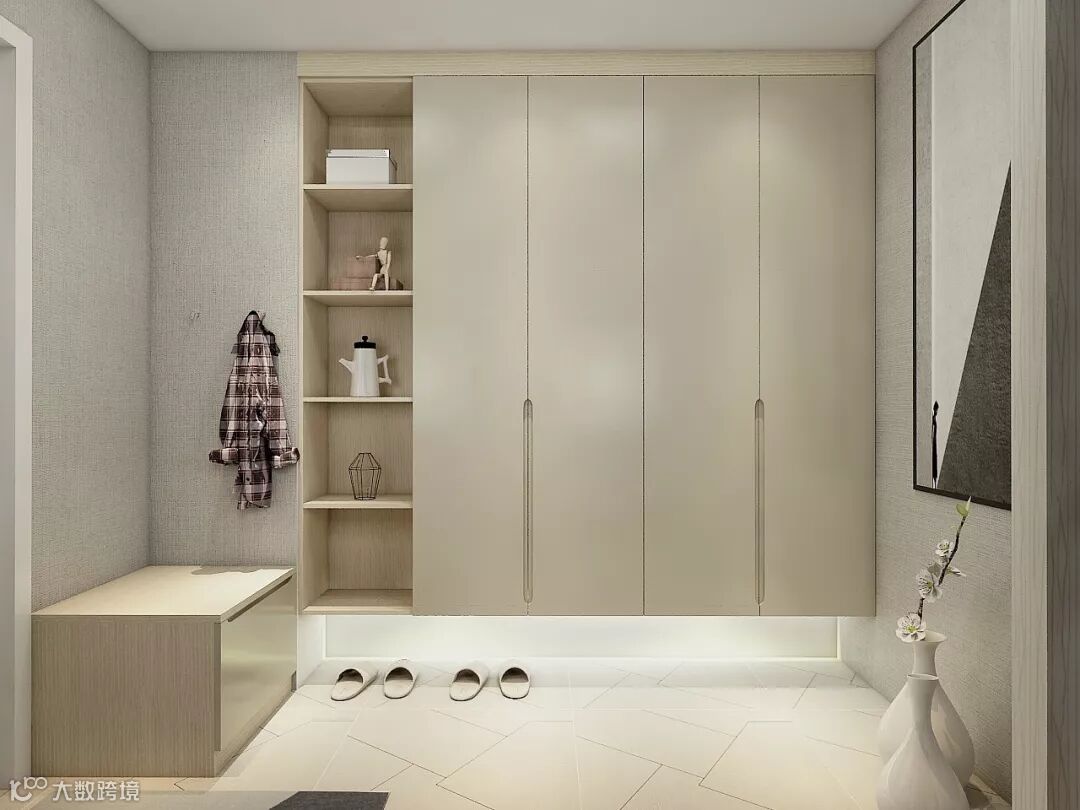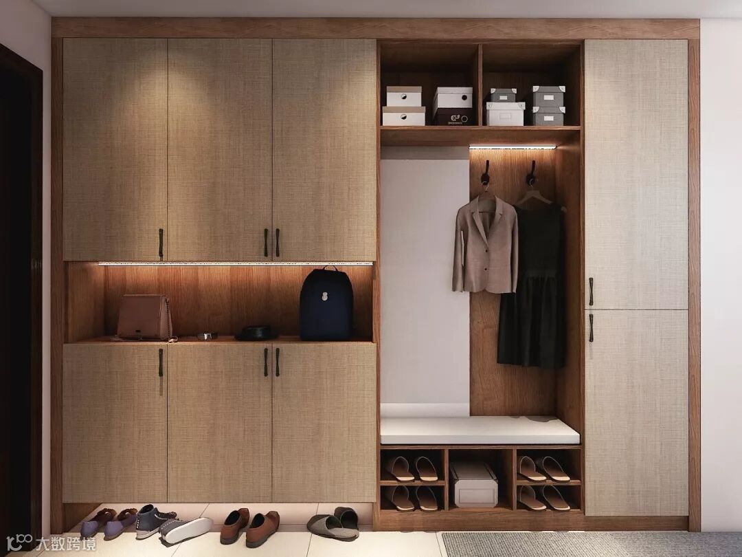 门厅衣柜处于过道,人来人往的建议选择封闭式,这样比较吸尘而且目前很多门厅衣柜都可以组合搭配,比如和鞋柜这样让空间得到更丰富的运用。