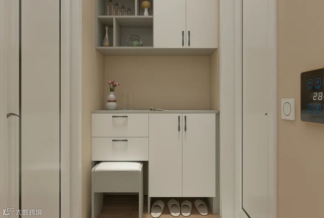 鞋柜与厨房区是一个开放空间,以保证得到充足的阳光。