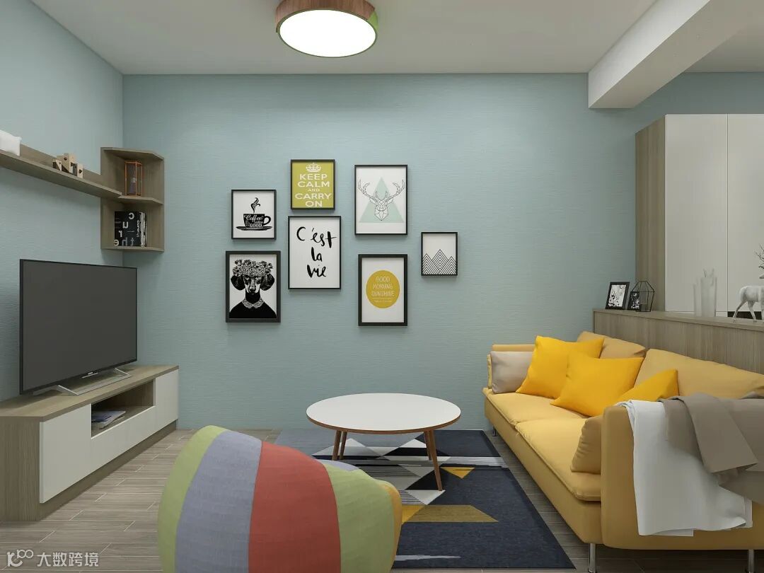 明亮的黄色与中性灰色的搭配使得空间变得清爽而不跳跃。