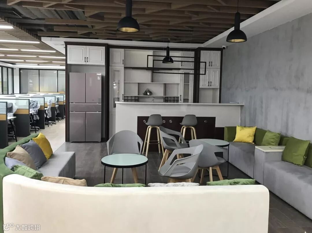 位于办公区中间位置的体闲会议区,混搭的沙发样式,既是员工休息的补给站,也是临时讨论会的便利场所。