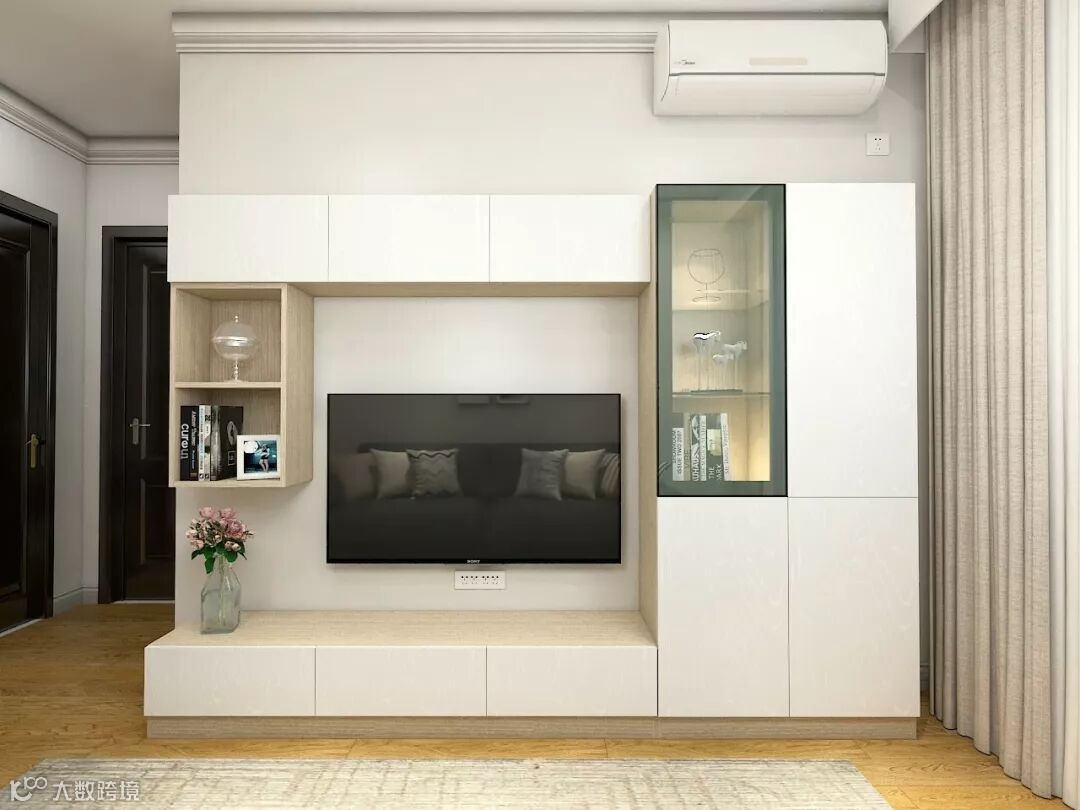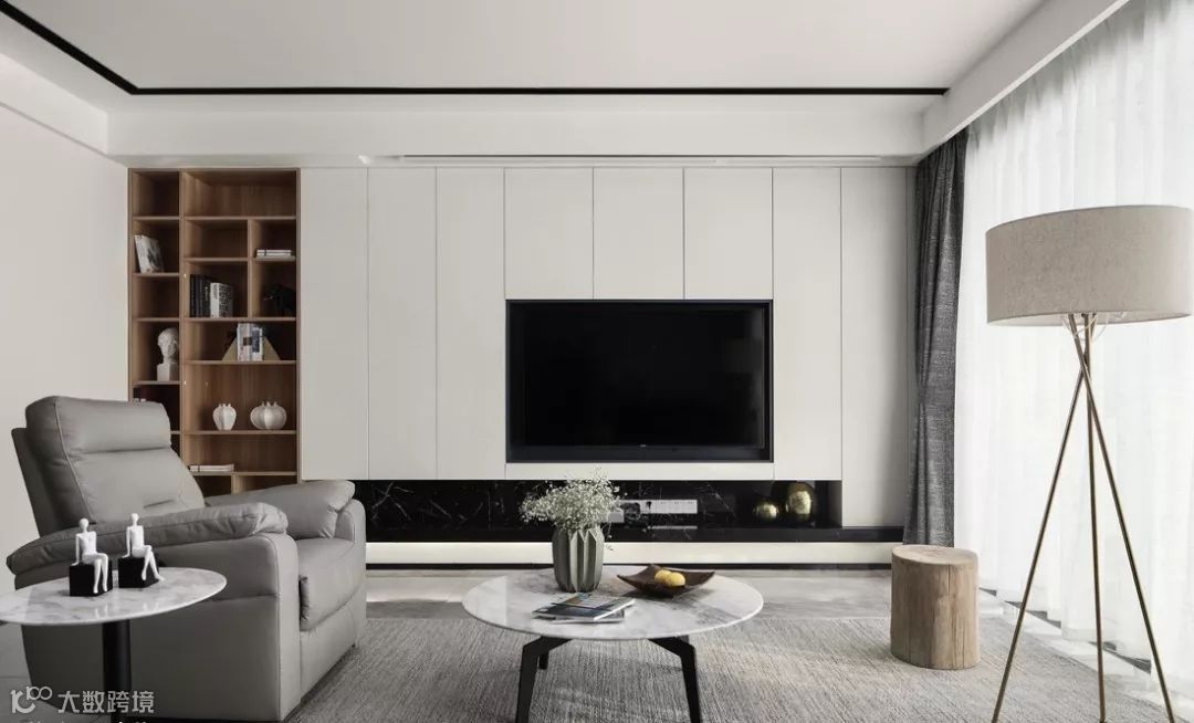 将电视墙设计成储物柜的样式,对于收纳空间不足的家庭来说非常友好。
