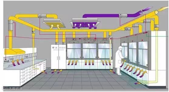 通常的生物化学实验室都要求保证实验室负压,防止实验室产生的毒害气体流入临近的办公区域,形成穿插污染。