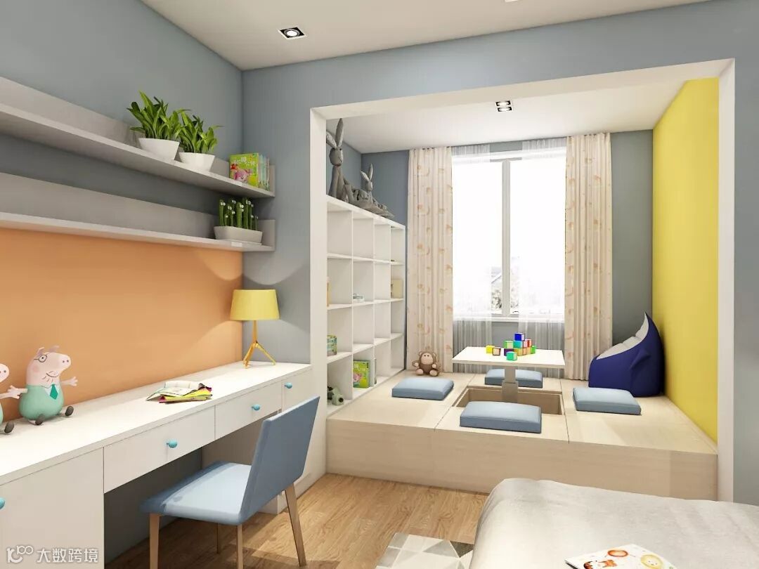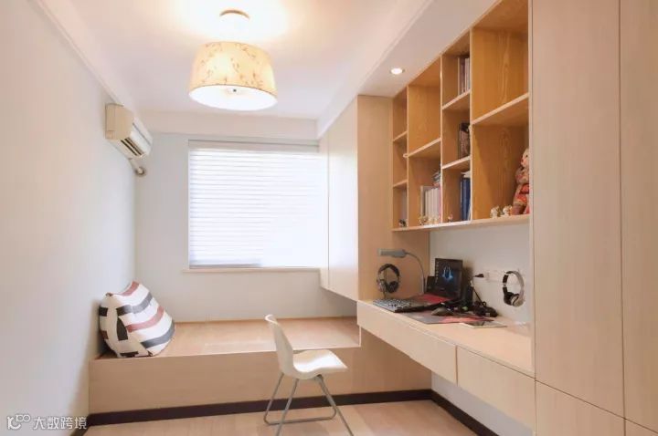 ▲ 榻榻米搭配书柜和书桌的设计是小户型次卧很常见的搭配。