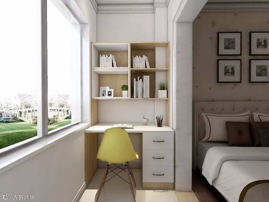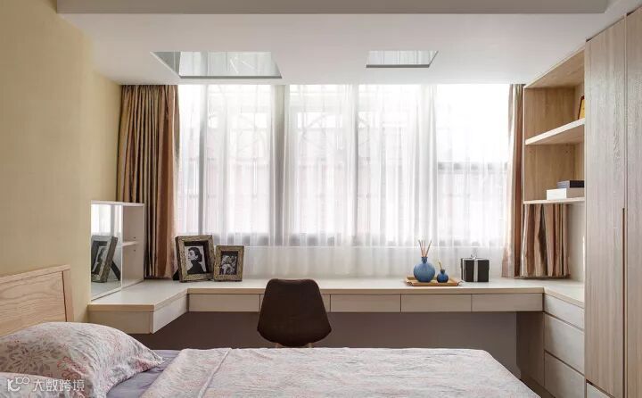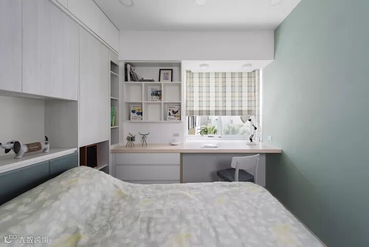 对于小户型而言,在有限的面积内实现自己想要的一些功能是需要花更多心思的。写字台是卧室内比较常见的,柜子更是必不可少的需求。