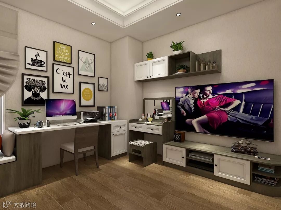 ▲ 书桌搭配电视墙设计。