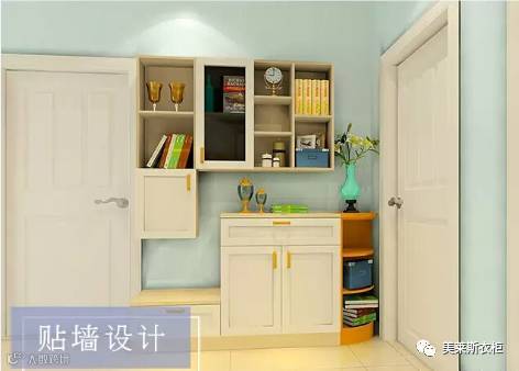 节省空间最基本的就是贴墙设计。落地与悬挂结合,既有展示区又有收纳区,一举两得。