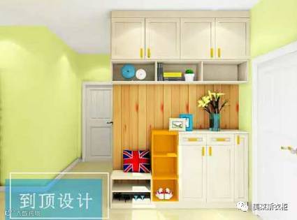 鞋子越买越多,家里已无多余的地面摆放新柜子了?把鞋柜设计成顶柜吧,完全不会增加面积上的负担。