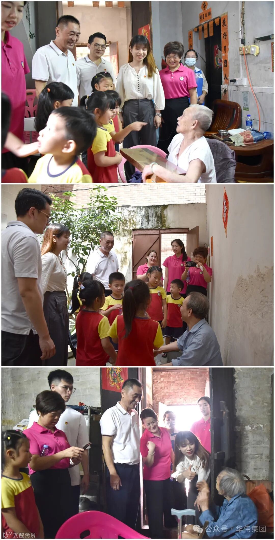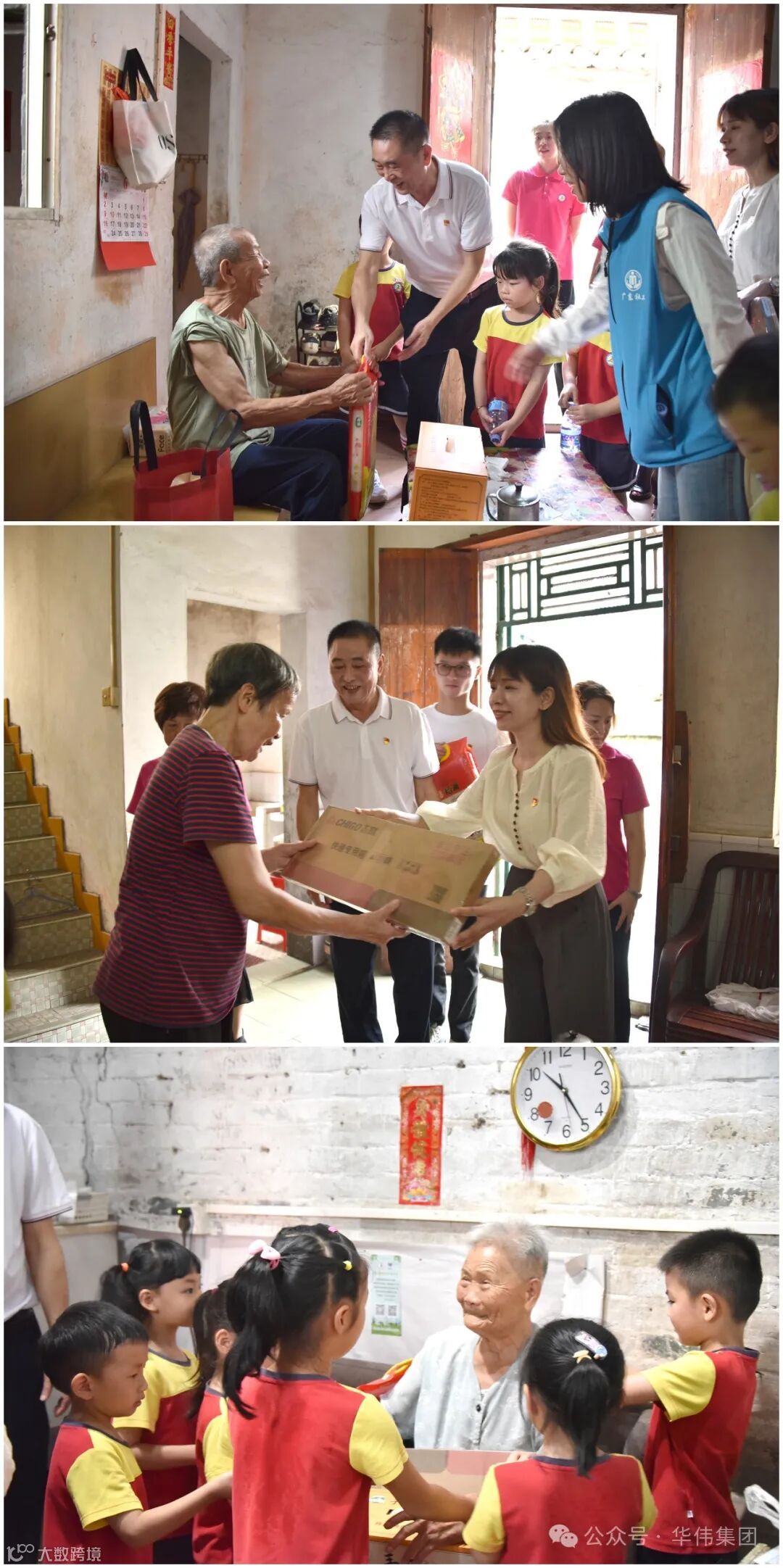 时至夏至,已然半夏。今天,厚街一扫过往数月的阴雨连绵,晴空万里,清风徐来,到处呈现出一派生机盎然的景象!为弘扬爱老、敬老的传统美德,践行企业社会责任。今日上午,华伟集团党支部联合海月第三幼儿园到涌口社区开展关爱百岁老人慰问活动,为老人们送上清凉用品和慰问品,向他们送上深深的祝福与关爱。华伟集团党支部书记李稳有、海月第三幼儿园园长杨秀琼、支部党员代表、园所老师、小朋友等参加了本次活动,本次活动共走访慰问6户高龄独居老人。