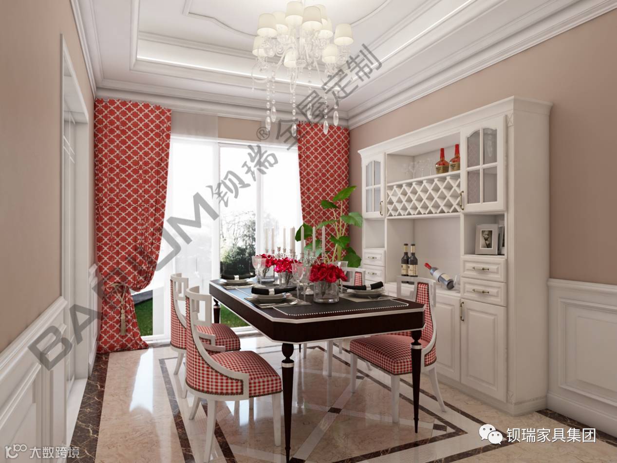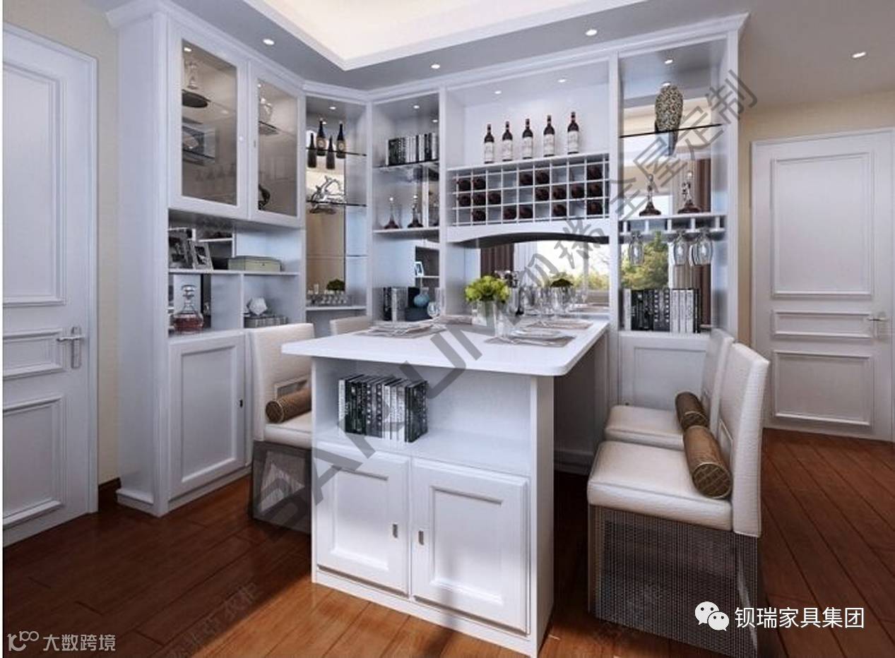 ······ 白色的欧式酒柜,描金的餐桌,尽显浪漫情怀。