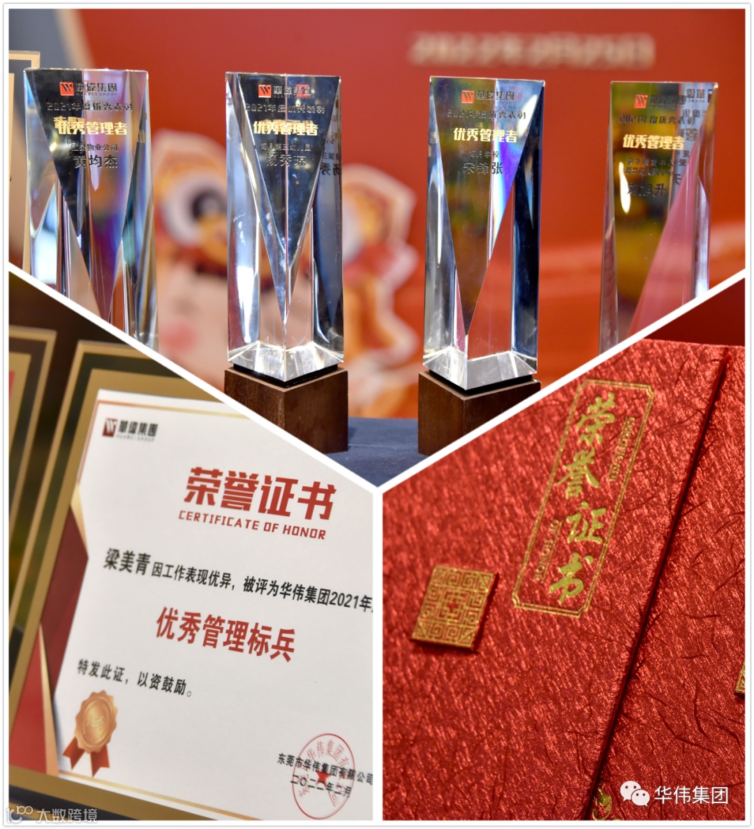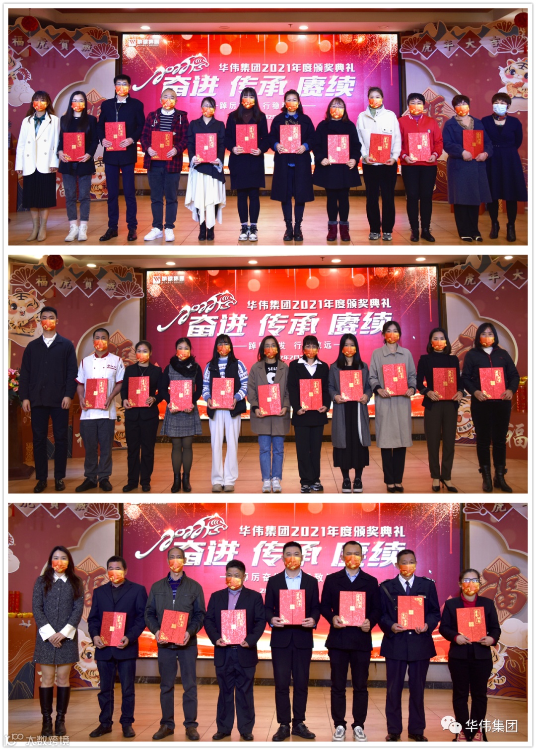 律回春晖渐,万象始更新。2月25日下午,以“奋进 传承 赓续”为主题的华伟集团2021年度颁奖典礼在聚缘酒家二楼宴会厅举行,大会对集团2021年度优秀员工、优秀管理标兵、优秀管理者共41人进行了现场表彰。华伟集团董事长黄普兆、总经理黄锦斌、党支部书记李稳有、董事总经理黄碧敏等领导及集团优秀获奖人员参加了大会。