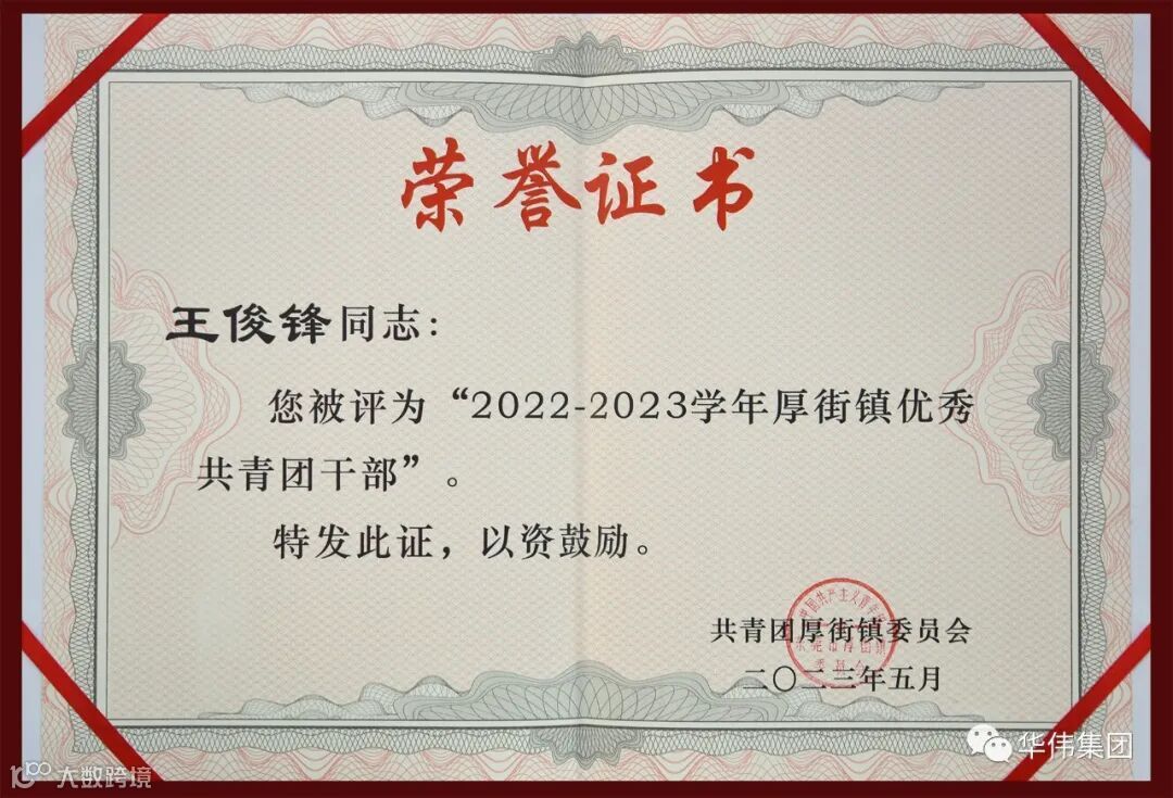 此外,我司团总支书记王秩锋被评为2022-2023年度“广东省优秀共青团干部;我司团总支副书记王俊锋获评“厚街镇优秀共青团干部”。