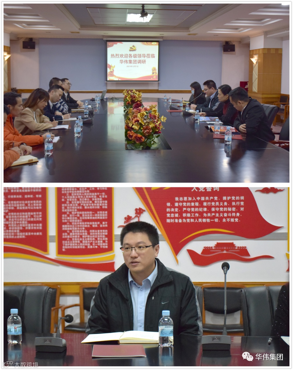 12月7日上午,东莞市委组织部组织三科科长祁杰超、厚街镇“两新”党建服务中心主任安娜、镇“两新”组织党委副书记张金永一行到我司调研党建工作。华伟集团党支部委员劳惠兵结合PPT向与会领导简要介绍了集团格局、支部设置以及党群联动共建基本情况。