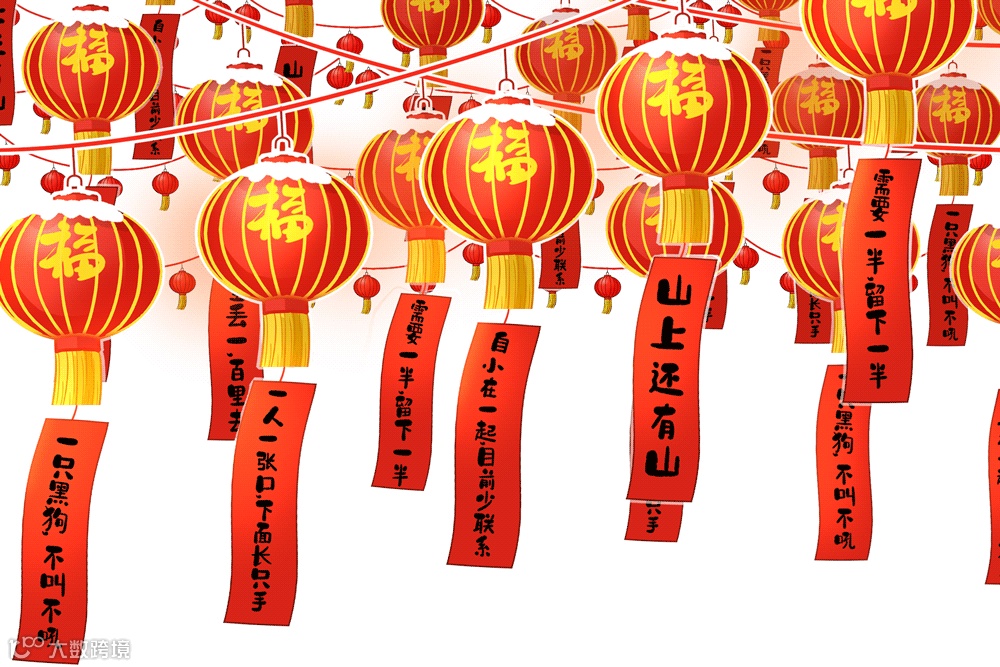 红色喜庆灯笼、灯谜高高挂,大家脸上也挂着兴奋而激动的笑脸,在一条条灯谜面前共同探讨研究,不时传出欢笑声与尖叫声,大家共同体验着猜灯谜带来的乐趣,现场俨然一片欢乐的海洋。