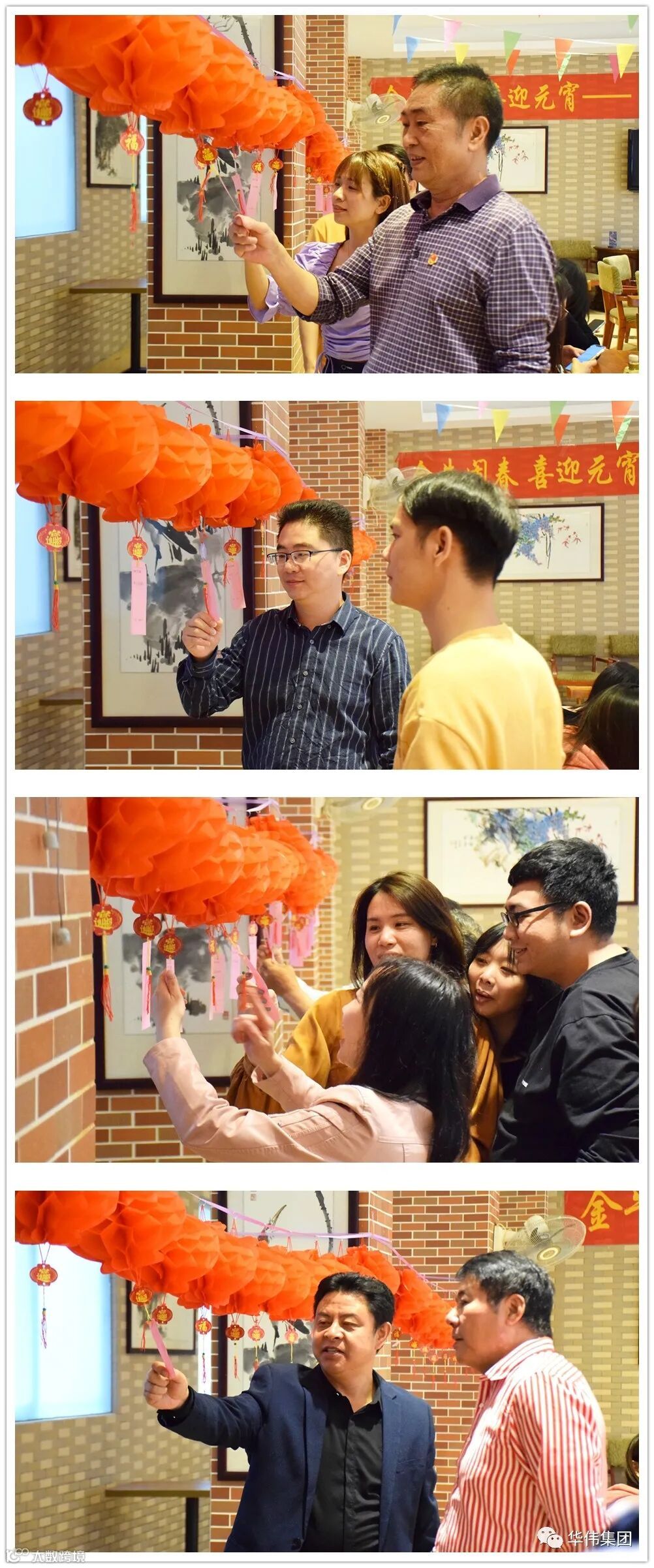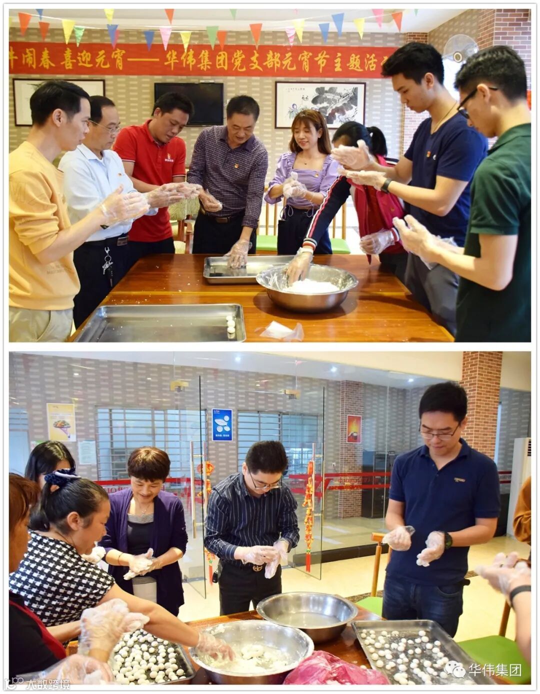 华伟集团党支部、总公司各职能部门人员约50人欢聚一堂,一起猜灯谜、动手搓汤圆,共庆元宵节的到来。