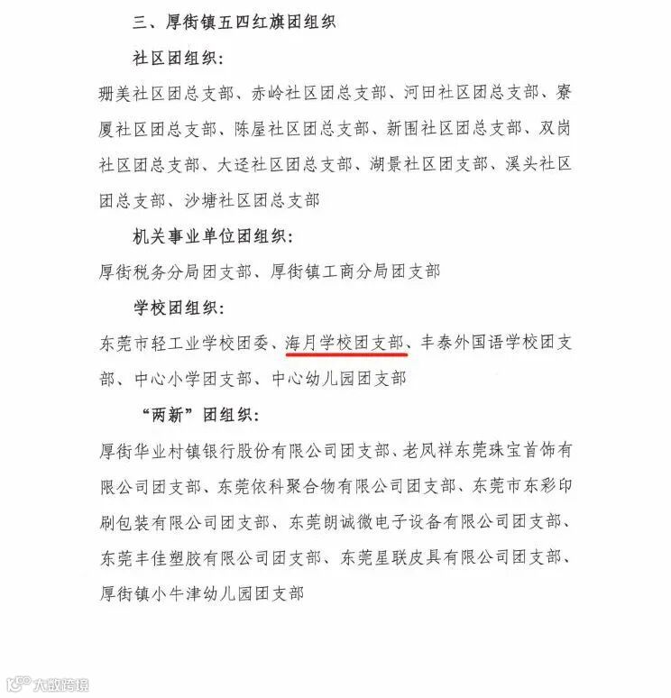 今天,从镇团委处获悉,我司团总支被镇团委评为“厚街镇2019-2020年度五四红旗团组织标兵”,这是厚街镇团组织最高集体荣誉;此外,海月学校团支部被评为“厚街镇2019-2020年度五四红旗团组织”。