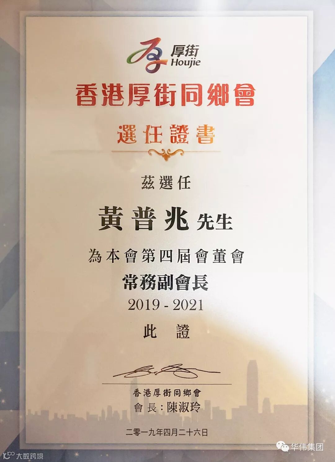 4月26日 黄普兆董事长就职香港厚街同乡会常务副会长