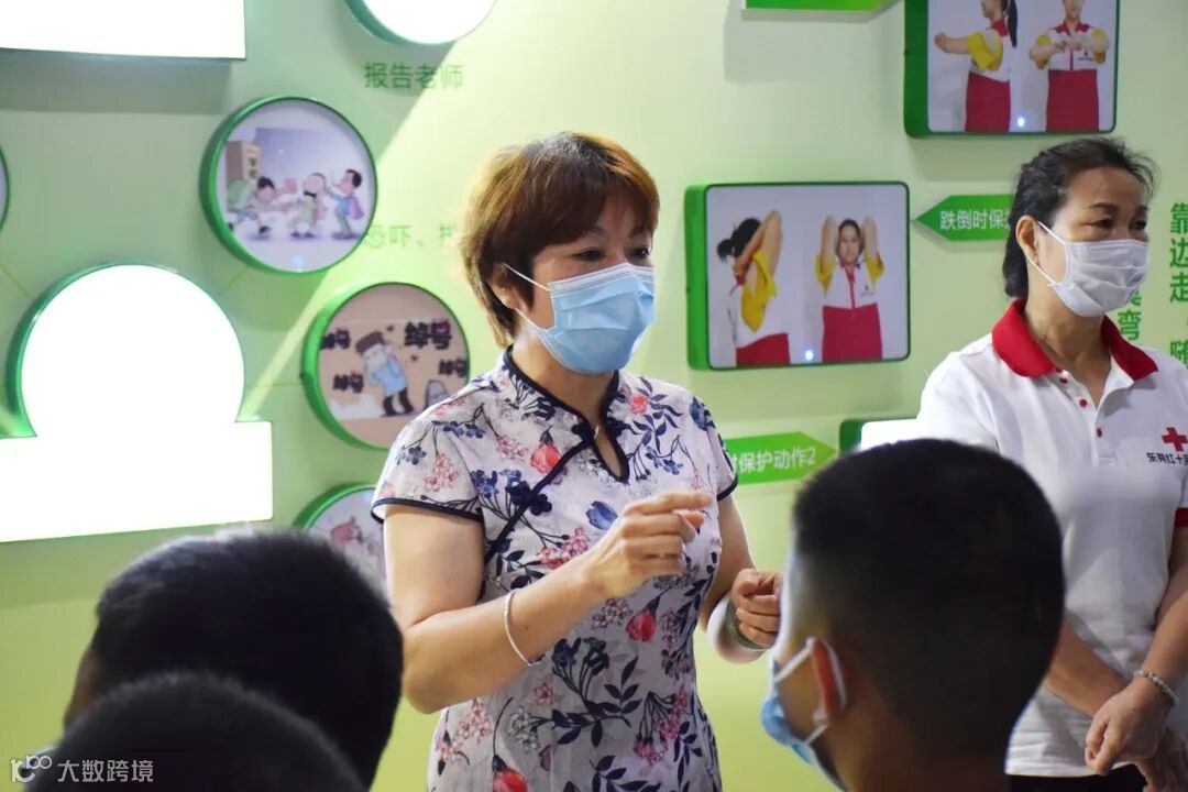 在“校园安全区”,讲解老师向孩子们介绍了如何保护自己和预防踩踏等安全知识。