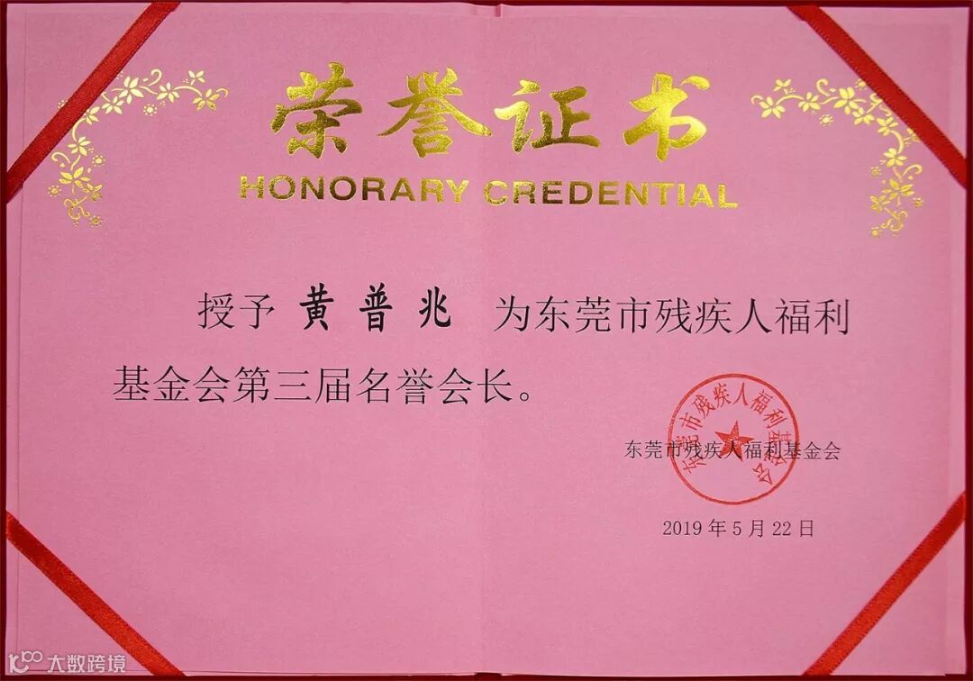 黄普兆董事长(左二)被授予荣誉证书